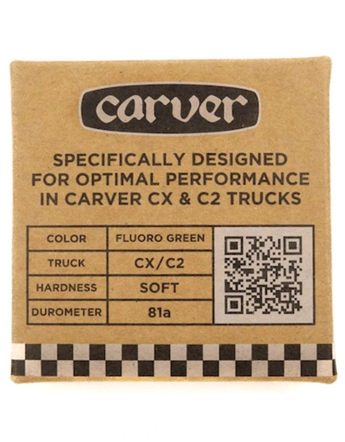Carver CX Soft bushings are available in 81A durometer and are best suited to lighter, younger riders. They are more flexible and therefore easier to turn, allowing a greater range of movement and a tighter arc of the turn with less pressure on the rail.