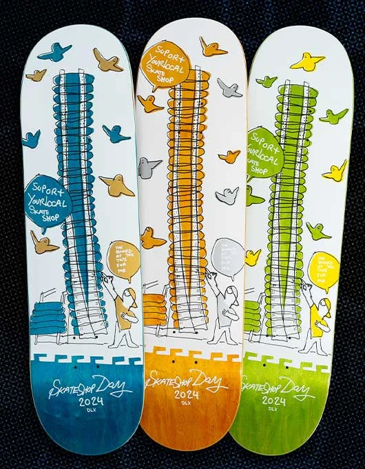 Include Skate Shop Day 2024 Top Graphic and ‘Support Your Local’ stickers inserts.
