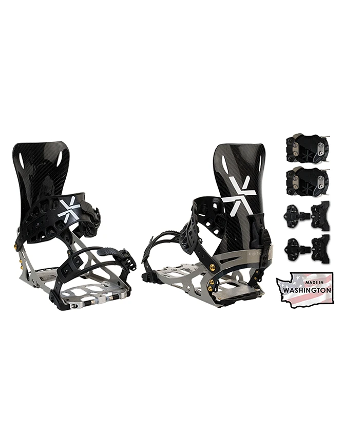 When only the best will do, the Karakoram Prime X Carbon Binding with Split Kit delivers elite-level performance for backcountry snowboarders who demand ultra-lightweight precision, lightning-fast energy transfer, and rock-solid ride feel. Engineered with aerospace-grade carbon fiber and CNC-machined components, the Prime X Carbon is Karakoram’s lightest and most responsive splitboard binding—built to conquer big lines and serious alpine terrain.
