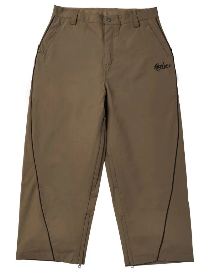 Resolve Baggy Track Snowpants in Brown. Featuring contrast piping all through the pant, a baggy fit, powder cuffs, 15K waterproof rating, resolve embroidery, and welt pockets.