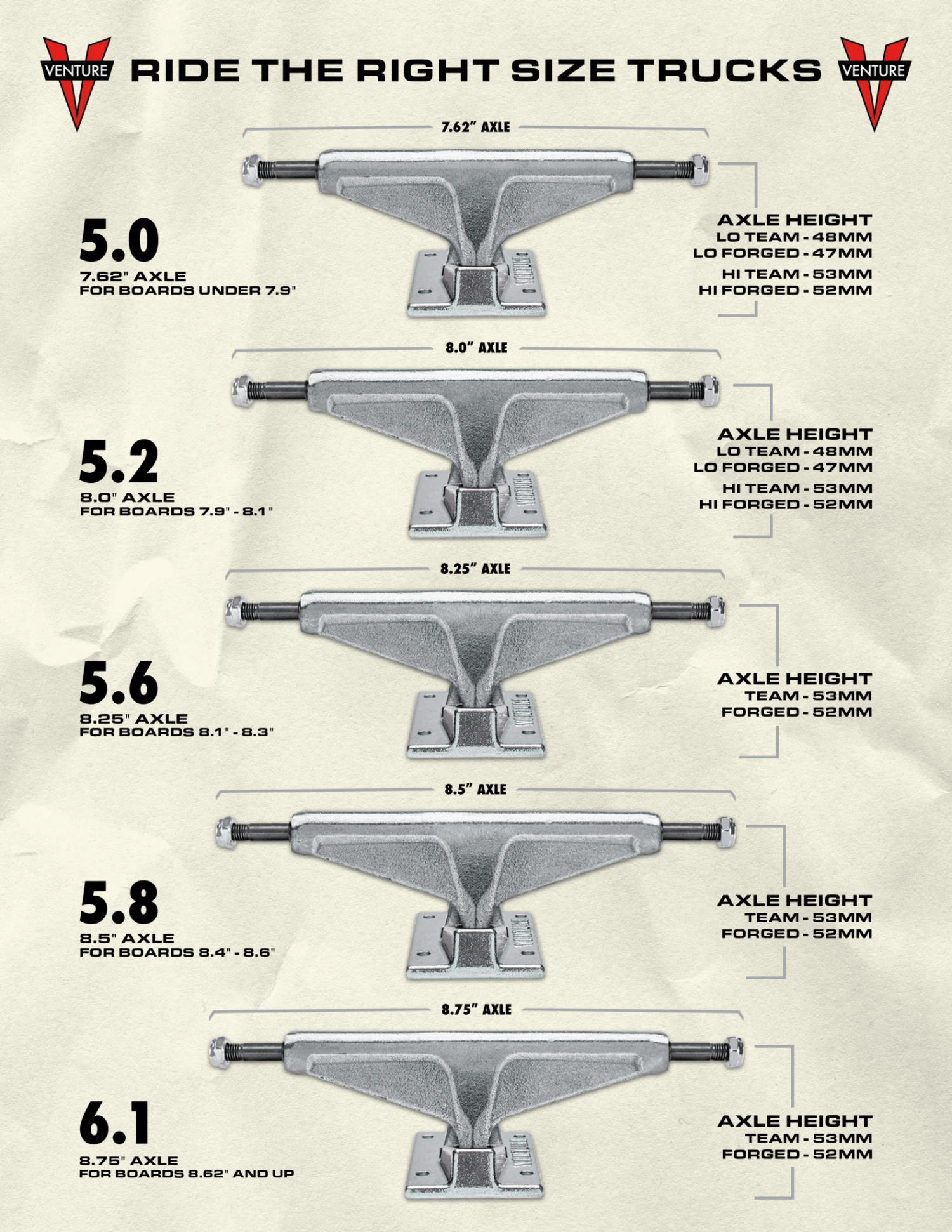 Always on the grind. Instantly recognisable as the essential street skateboarding truck. Venture has been in the business for over 30 years. Top technically skilled pros ride the trucks whether they are on the team or not. Classic and solid in a range of models and colourways.