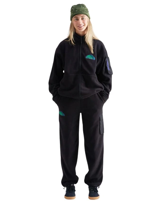 Built from 100% recycled 300gsm fleece and reinforced with 100% recycled ripstop nylon contrast panels, this one’s as tough as it is cozy. Zipped pockets, bellowed chest details, and elastic hem adjusters give it real ride-ready utility. It’s the go-to fleece for crew who want to stay warm, look fresh, and wear it all winter.